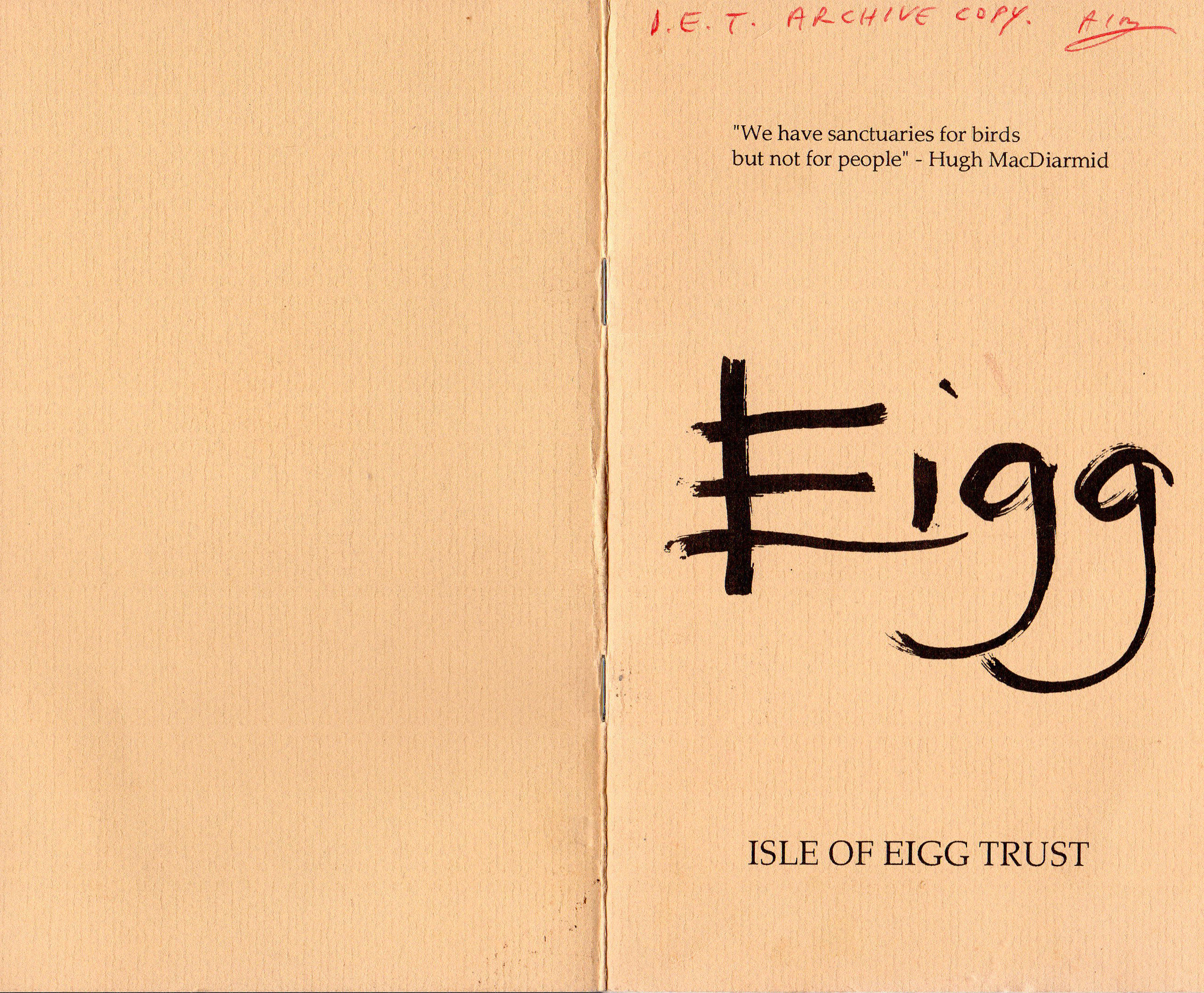 1. The manifesto pamphlet of the original Isle of Eigg, as launched 23 July 1991: in PDF, or in scanned images below