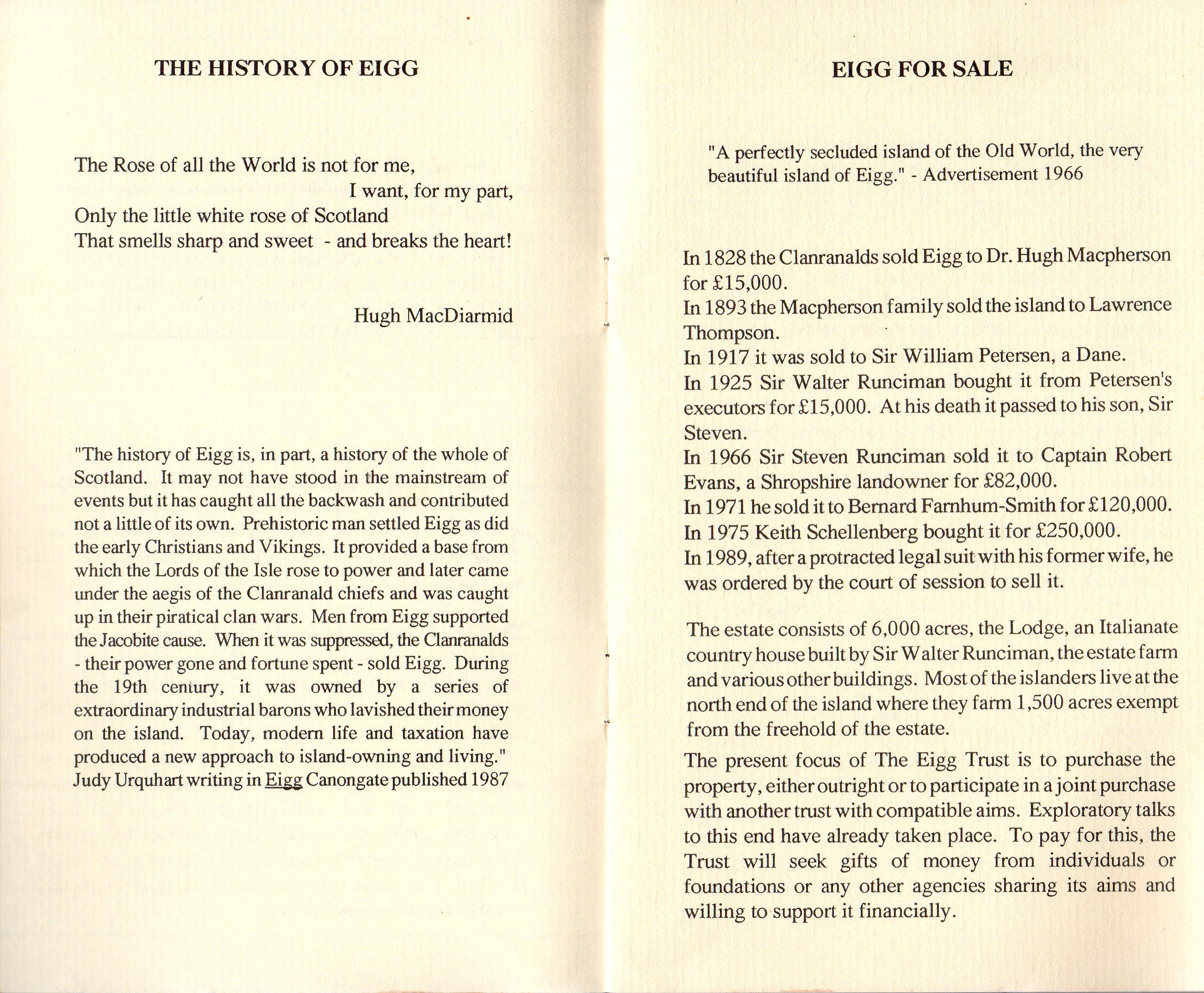 The last Isle of Eigg sales brochure, 25 July 1996 (the Maruma era)