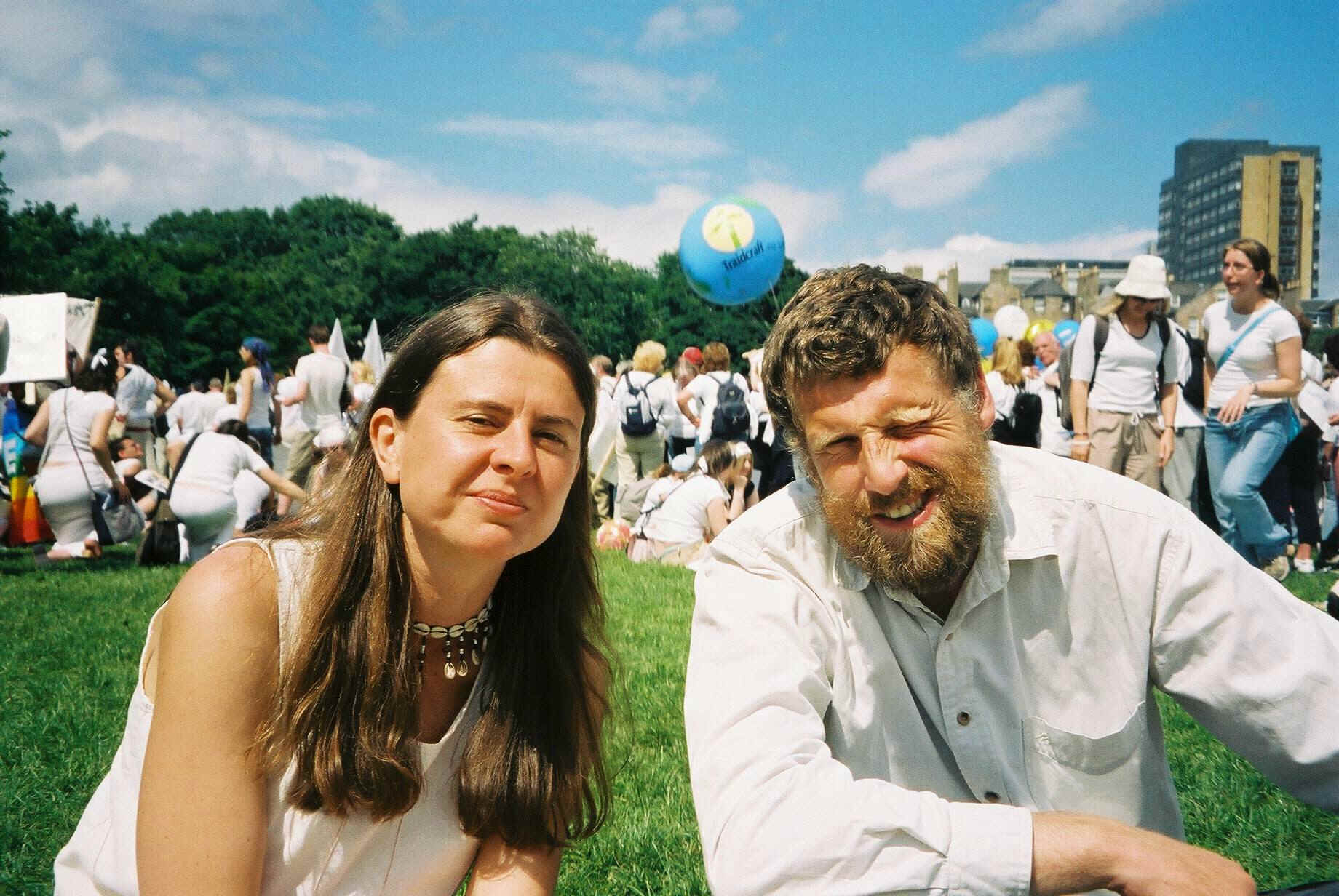 Véréne Nicolas & Alastair McIntosh at G8 Make Poverty History Protests, 2005 (picture Murdo MacDonald)