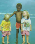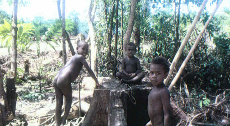 3. Children on Malaita Island, Solomon Islands, 1989. The logging companies (Kayuchem from Taiwan, in this instance), have cut the Terminalia Brassia forests right down to the shore. Not only does this deprive fish of breeding grounds, but it was found that infant malnutrition at the age of about 3-4 suddenly rose. Nutritionist Dymphna Leonard told me that this was thought to be because the children, at this age, had teeth hard enough to crack the tree's protein rich nut, thereby improving diet. However, with the trees cut, this source of food for the children had been taken away.