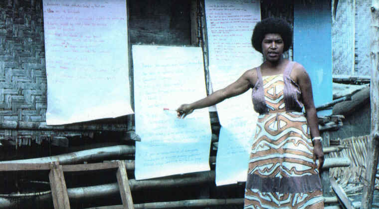 6. Margaret Ogomeni, then SPATF's head of Extension Work, running a workshop at Karama, Gulf Province, 1984.