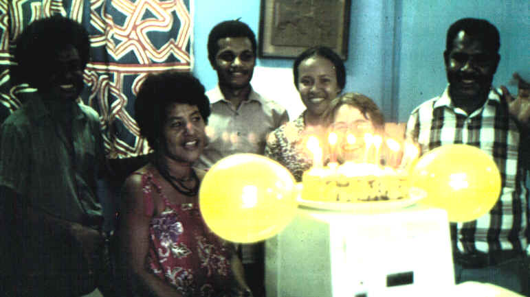 Papua New Guinea & Solomons Pictures 1984-86 & 1989 These pictures are all taken off reproductions made from slides, therefore the quality is not great. 1. Head office staff of South Pacific Appropriate Technology Foundation (left to right: Bede (publications), Kora (office manager), Albert MacMotisi (accounts), Hanna (secretarial), Dory (projects) and Andrew (director). Andrew Kauleni tragically passed away in the early 1990's. He was a great visionary and rich in kindness.