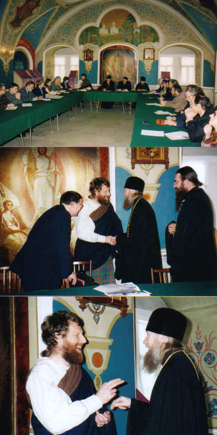 Photos from Russian Academy of Sciences & Orthodox Church Visit Land, Power & National Identity Seminars, Moscow - February 2000 Captions are given at top of photos to enable easy scrolling down. Click hyperlinks to see Land, Power & National Identity seminar paper, the resultant book, Healing Nationhood, and more pictures showing iconography including St Andrew. Click here for Land, Power & National Identity Russian seminar paper Click here for paper on Saint Andrew: Non-violence and National Identity